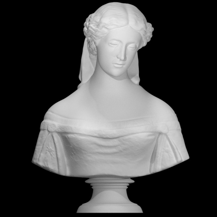 Pierce Francis Connelly modeled Cordelia after his elder sister, Adeline. Cordelia is the youngest daughter of Shakespeare’s King Lear. In the play, Cordelia, the aging monarch’s only loyal child, battles to save her father’s kingdom. The Smithsonian Institution used this sculpture as a model for the faces of the mannequins that are in the first ladies exhibition at the National Museum of American History.